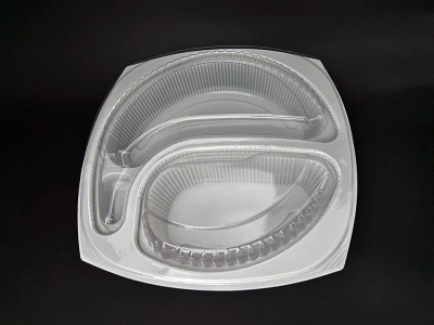 PP 3格(M)白色3 compartment hinged clear clamshell medium size